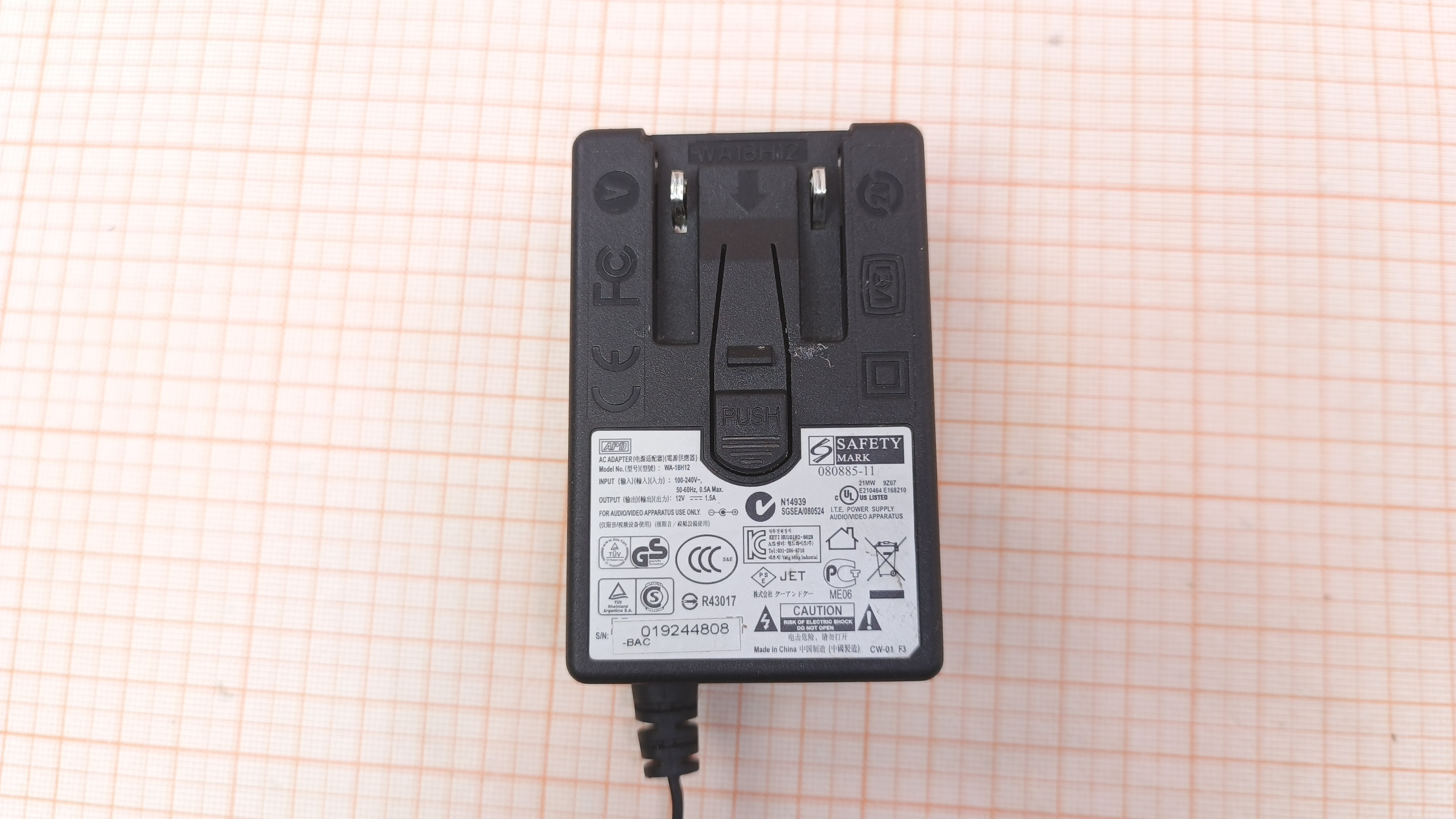 WA-18H12 / 18W / 12V / 1.5A / 4.0×1.7 мм / Без сменных входных вилок / Не включается