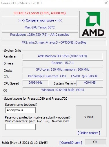 >>>Данные тестирования FurMark Benchmark: