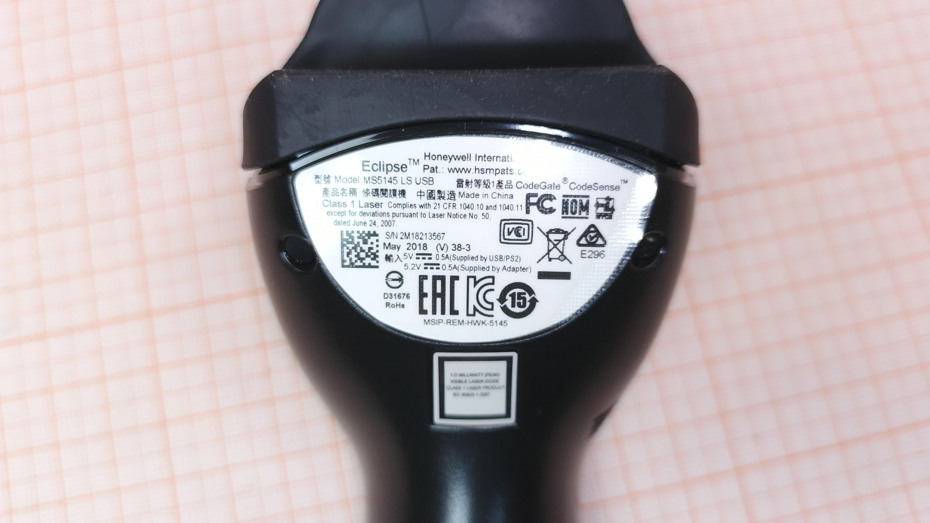 MS 5145 LS USB / EAC / 1D / 72 скан/сек / Лазер 675 нм / USB / Чёрный / Не реагирует на нажатие клавиши / Моргает лазер