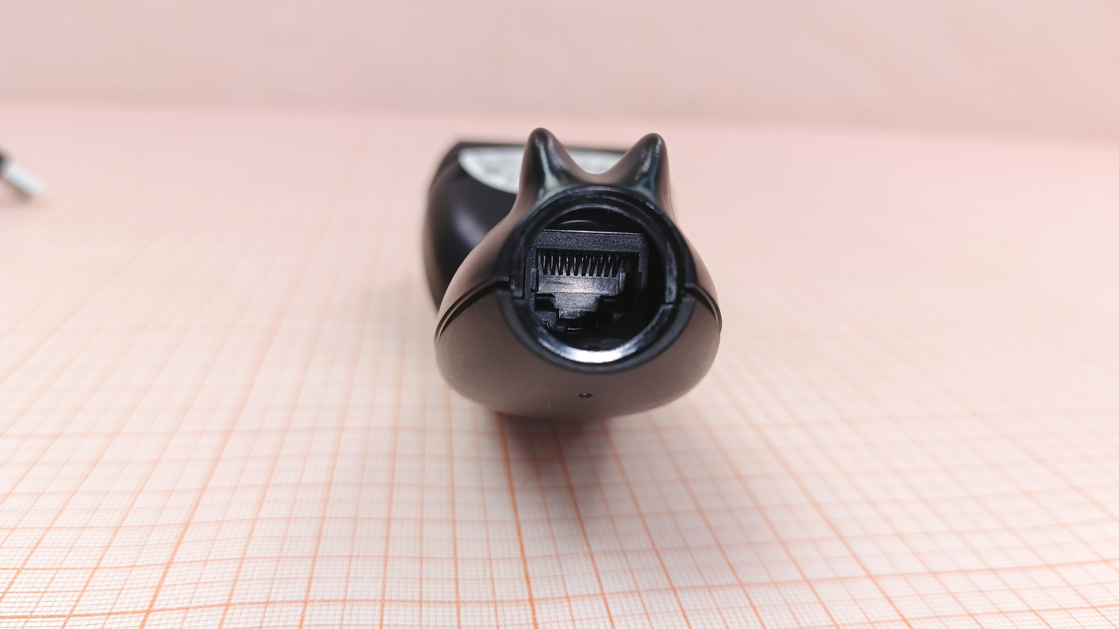 При подключении к ПК загорается лазер и раздаётся звуковой сигнал. Корректно определяется ПК. После загрузки лазер начинает моргать с периодичностью в 1 секунду. Не реагирует на нажатие клавиши.