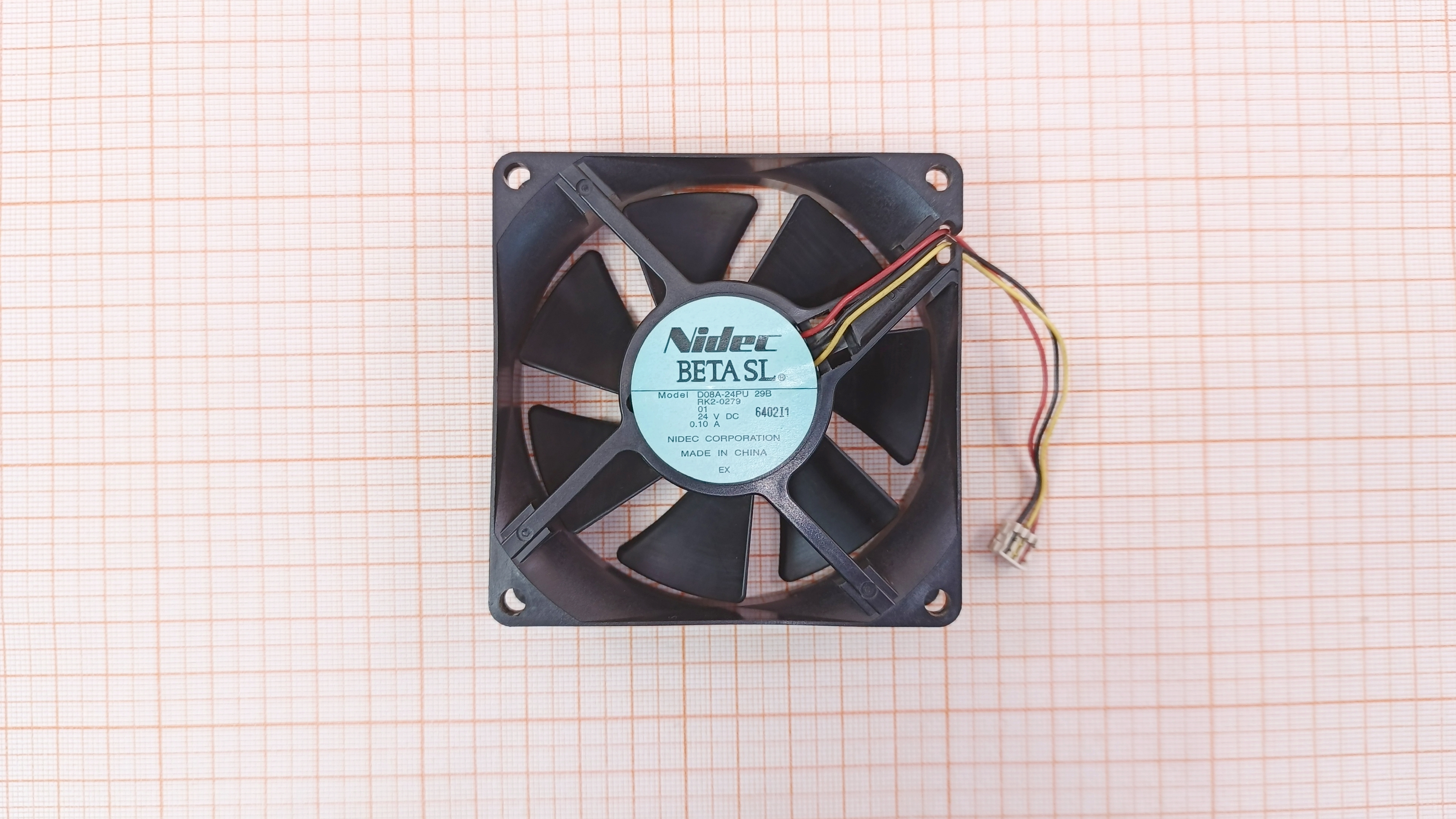 RK2-0279 / D08A-24PU 29B / 80×80×25мм / 3250 RPM / 24V - 0.10А / 44.1 CFM / 33.5 dBa / 3 Pin