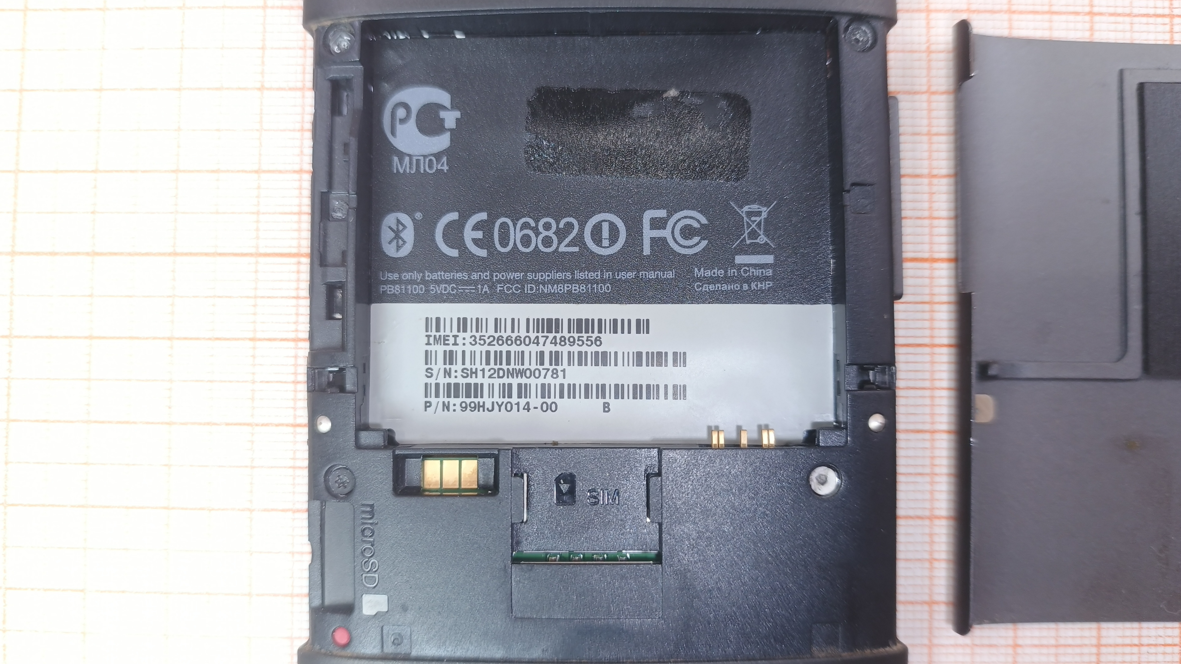 Тест проводился с оригинальным АКБ от аналогичного смартфона. Включается, загружается ОС. Матрица передаёт изображение с заметным искажением цветов. Тачскрин работает без нареканий. Клавиши работают исправно. АКБ и СЗУ отсутствуют в комплекте.
