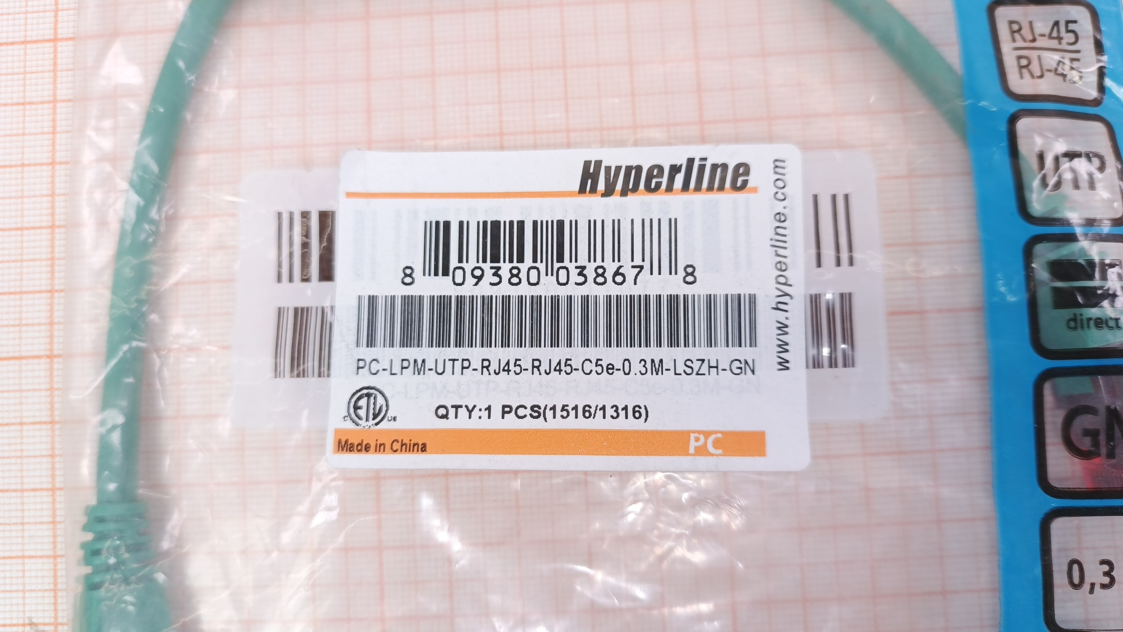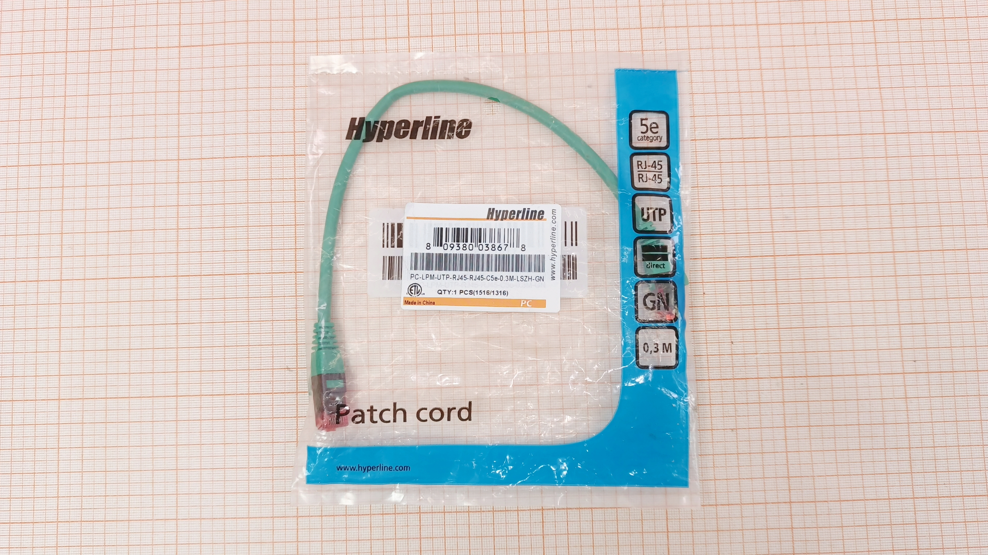 PC-LPM-UTP-RJ45-RJ45-C5e-0.3M-LSZH-GN / 0.3m / UTP / Cat.5e / 4PR / PVC / RJ-45 / Зелёный