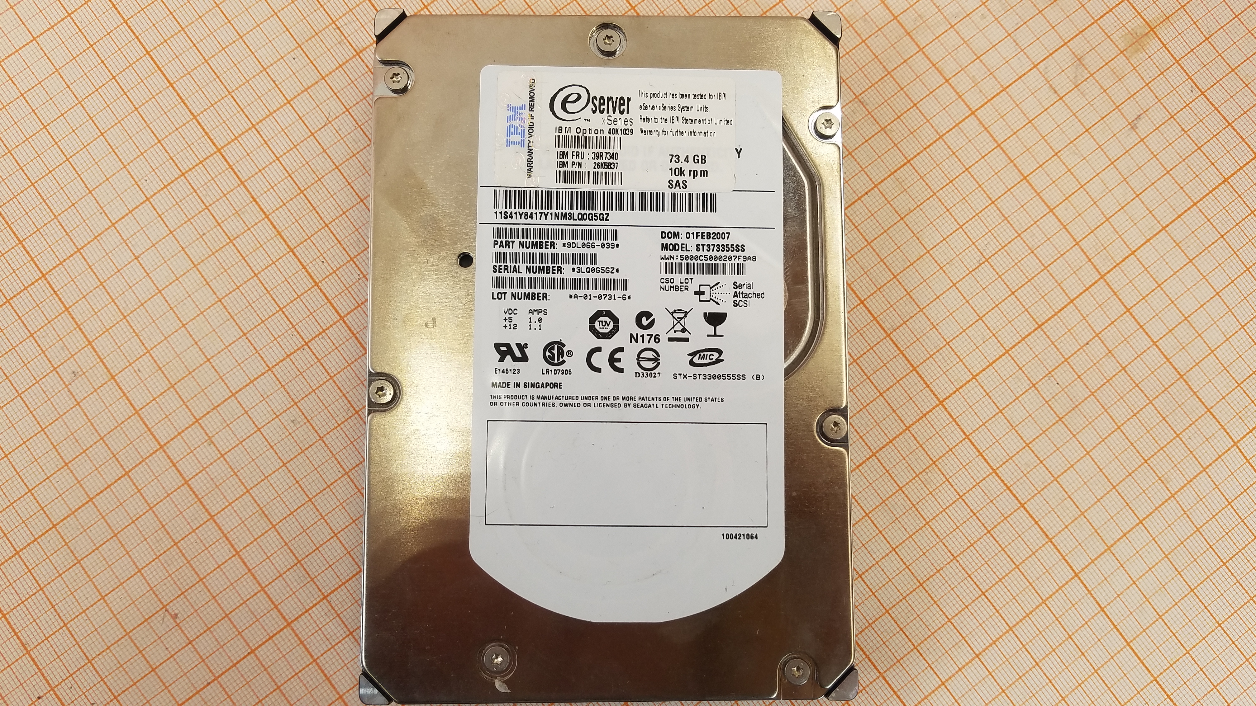 IBM FRU: 39R7340 / IBM P/N: 26K5637 / ST373355SS / 73.4GB / 10000rpm / 8Mb / 6705 ч / 3GB/s