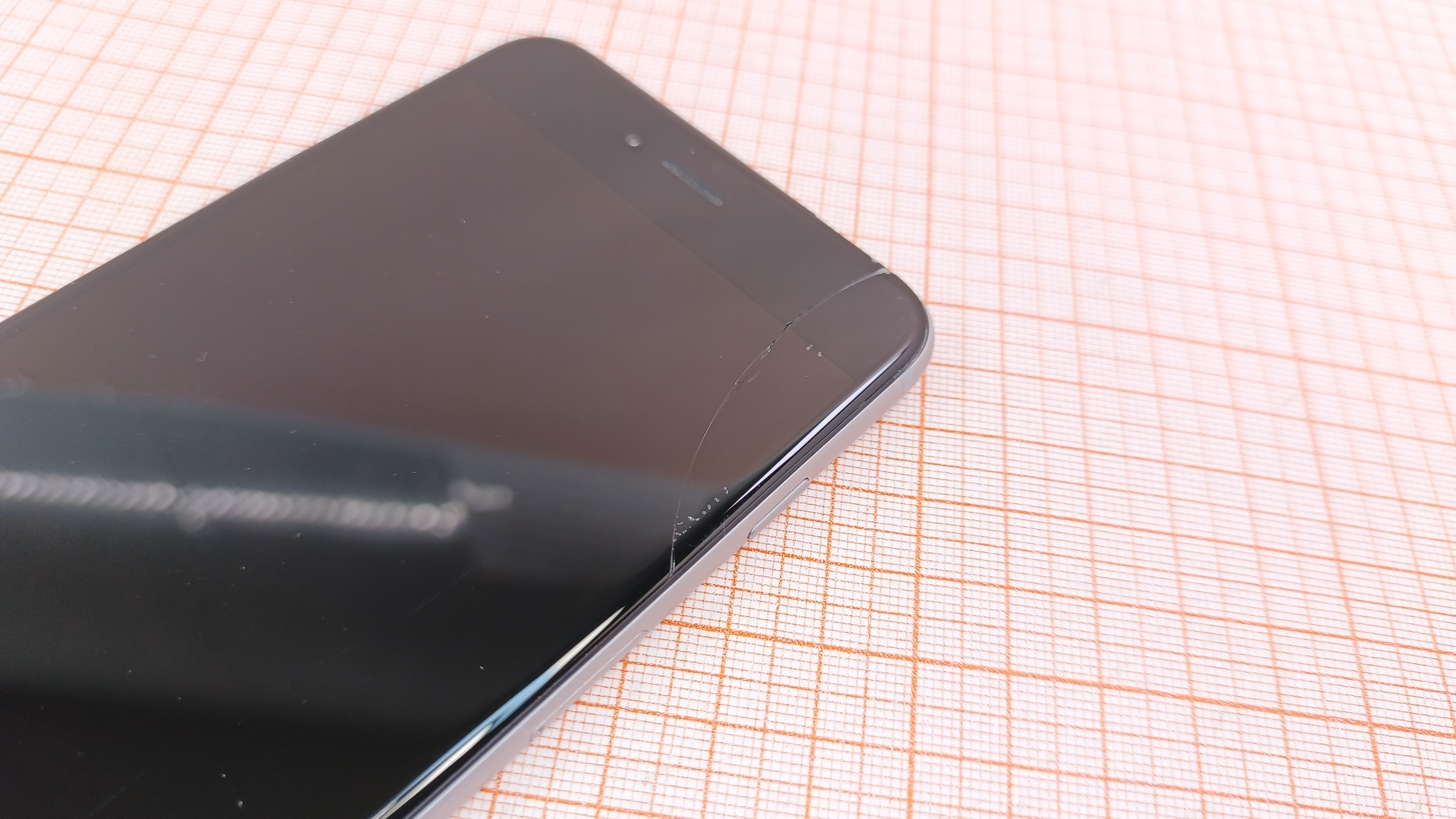 > Трещина на внешнем стекле дисплея.