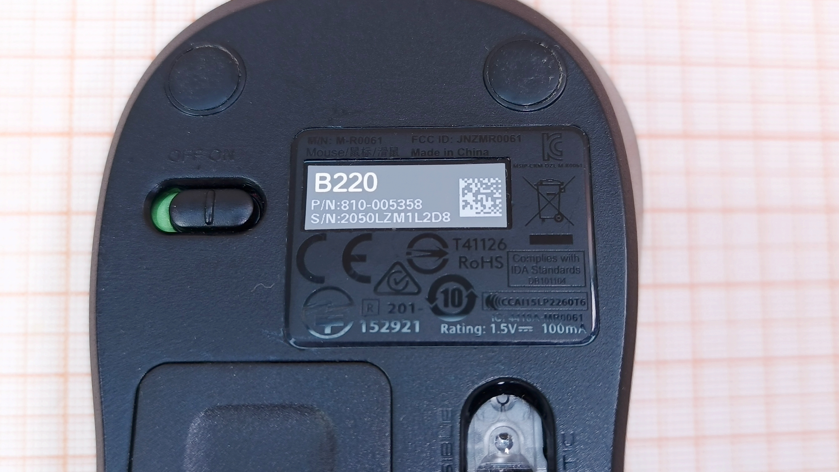 B220 / M-R0061 / 810-005358 / CU0010 / EAC / CE / USB / 2.4GHz / 1000dpi / 3btn / Roll