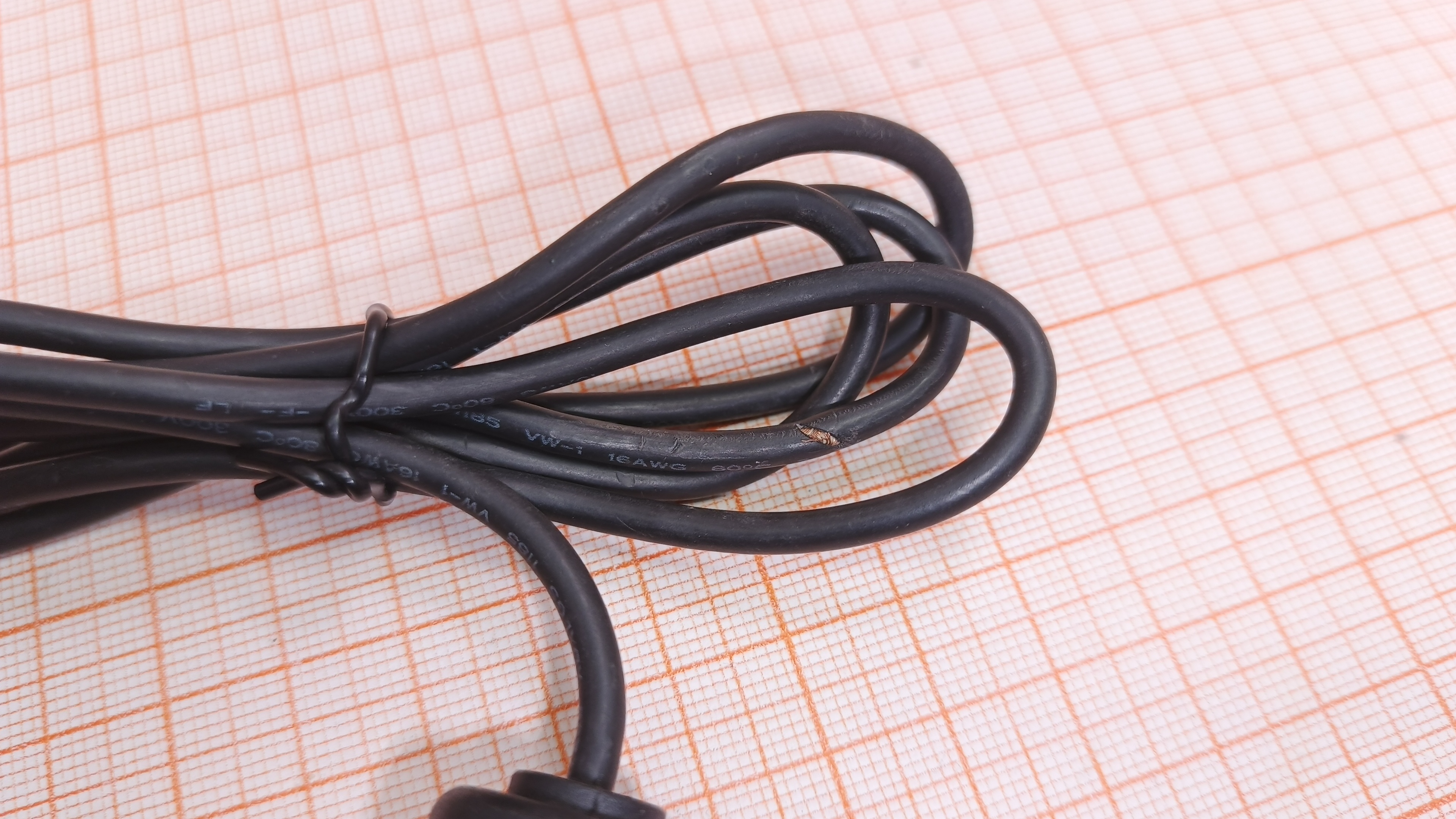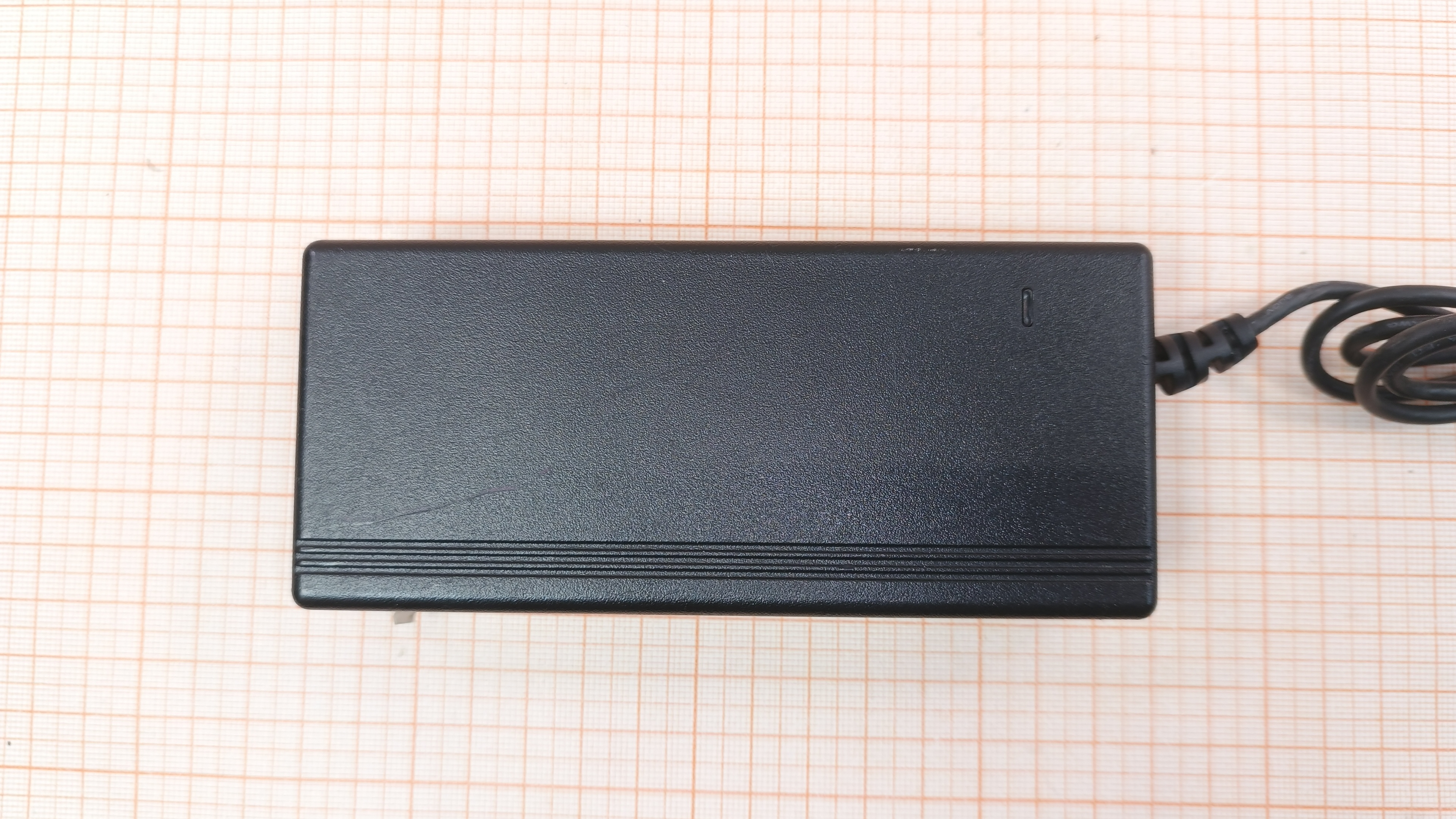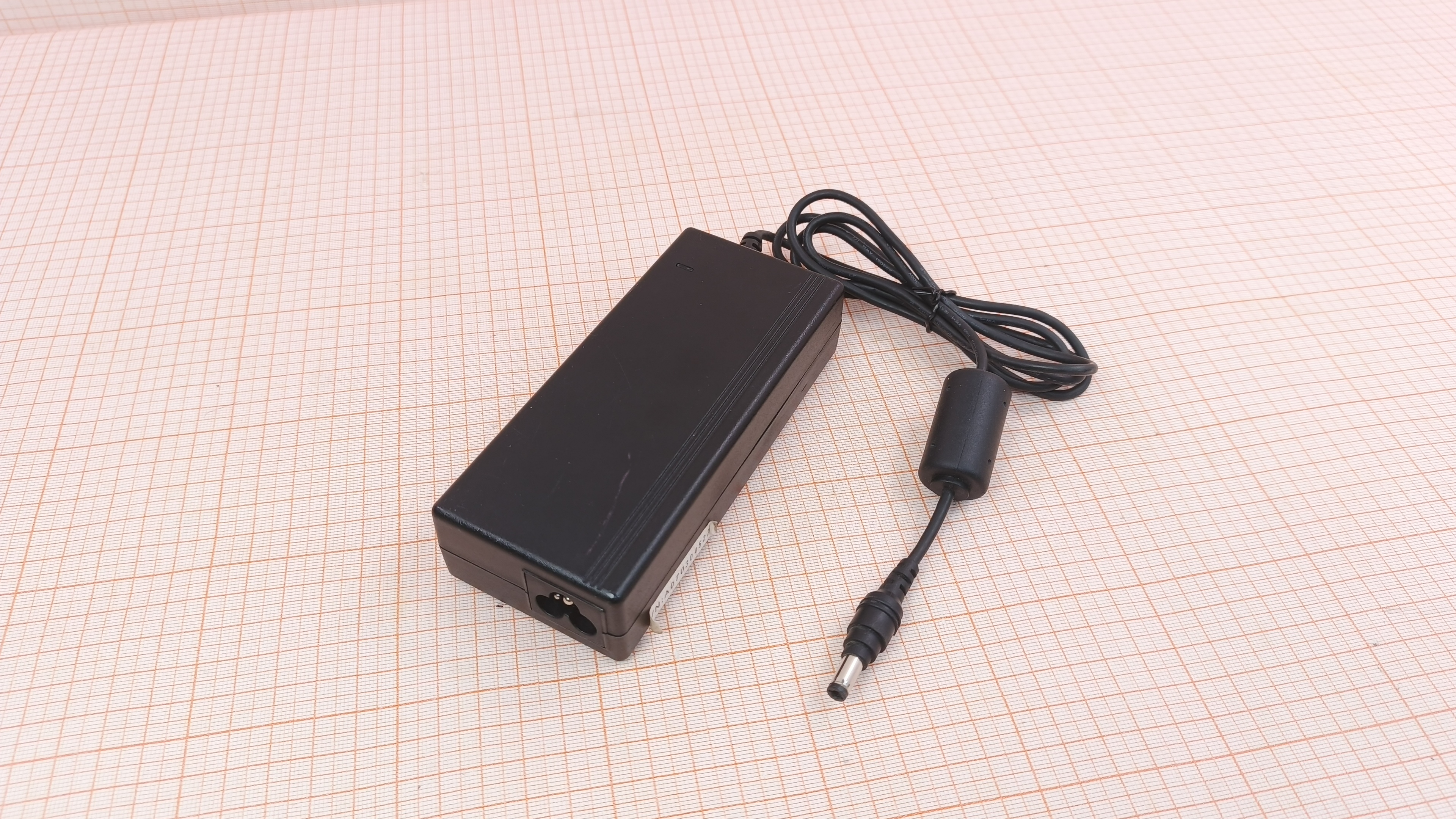 Проверен тестером без нагрузки, выходное напряжение U вых. = 12.7V. Повреждена внешняя оболочка кабеля