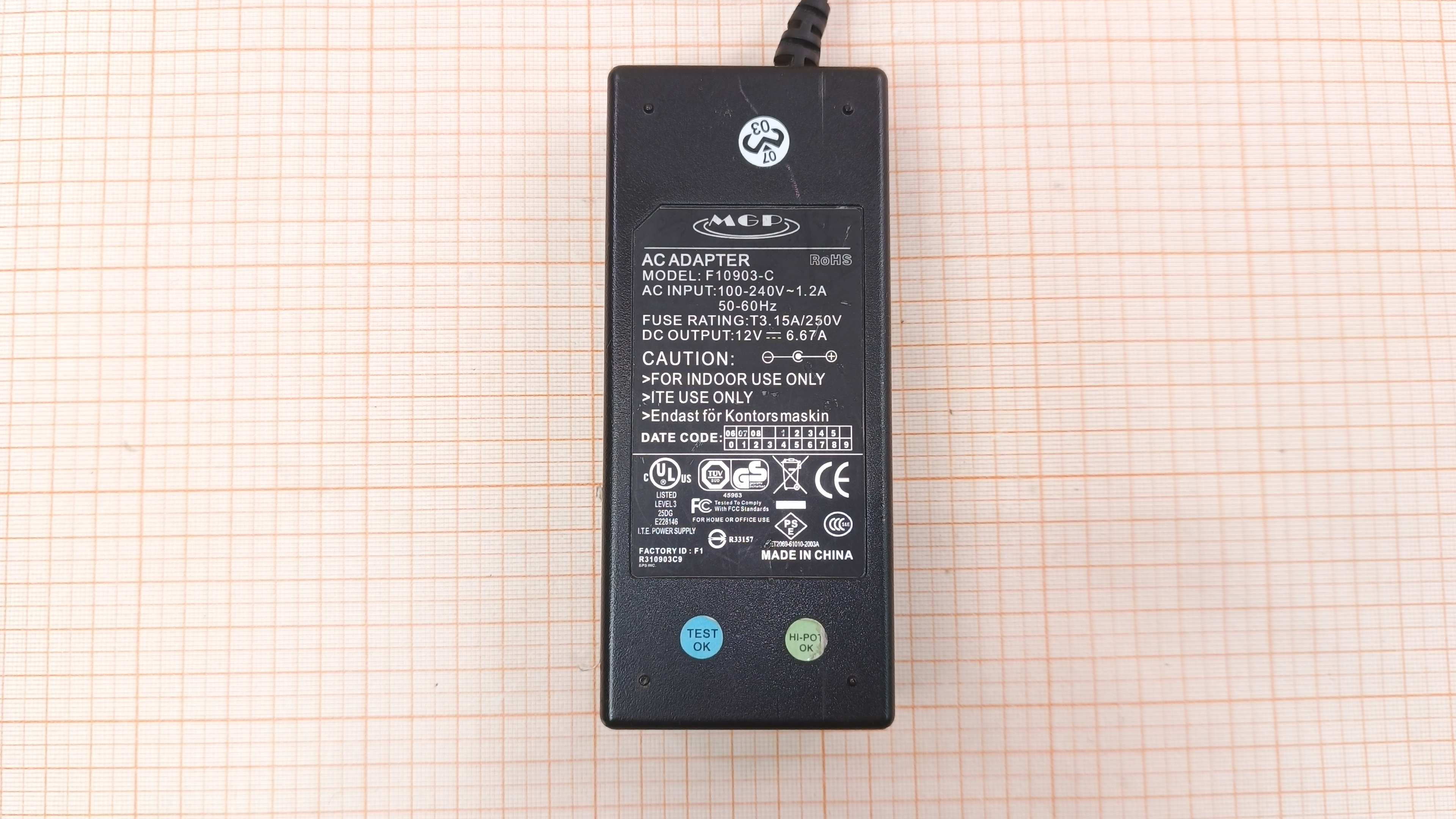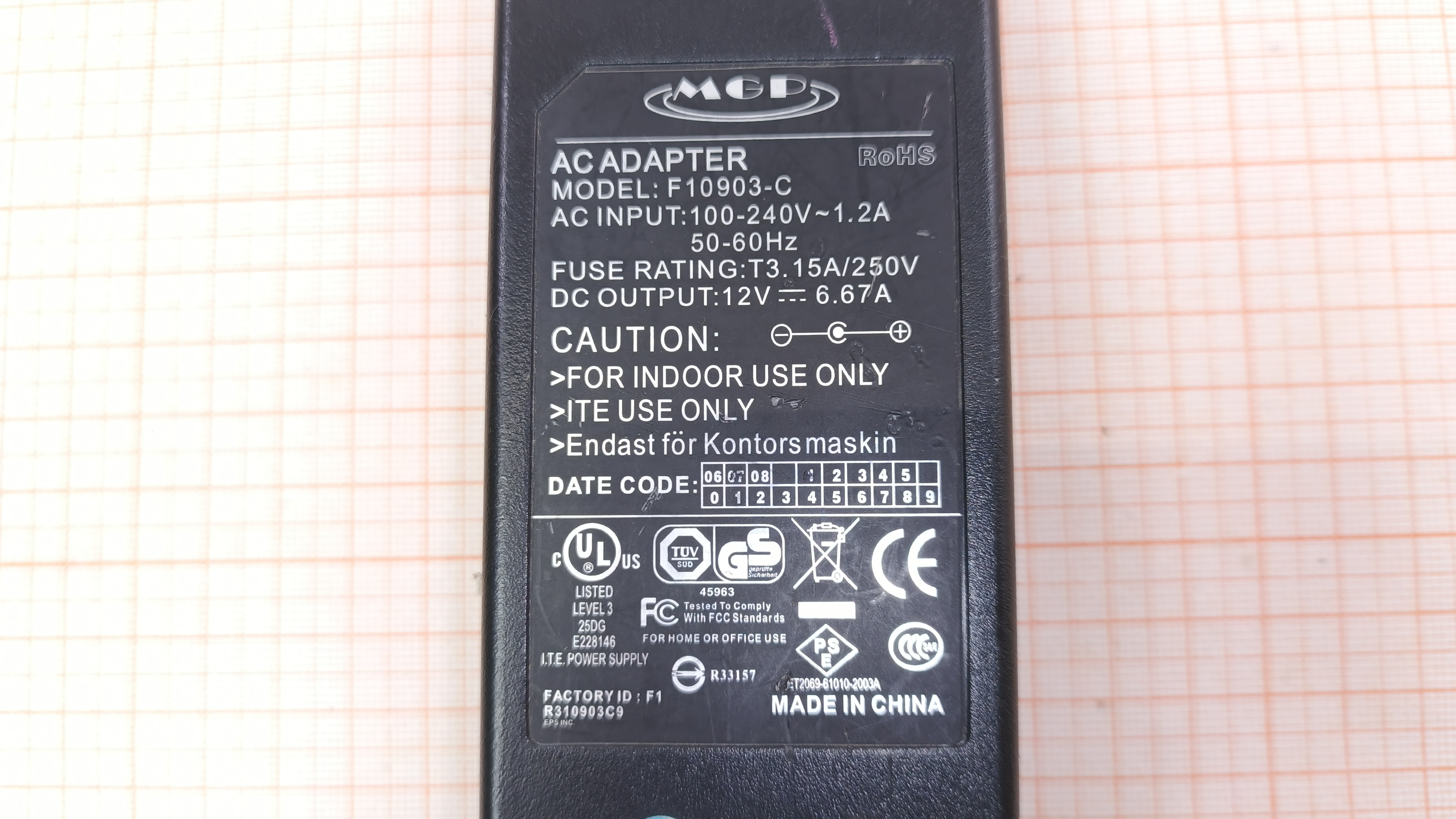 F10903-C / CE / 80W / 12V - 6.67A / 5.5x2.5 мм / Повреждена внешняя оболочка кабеля