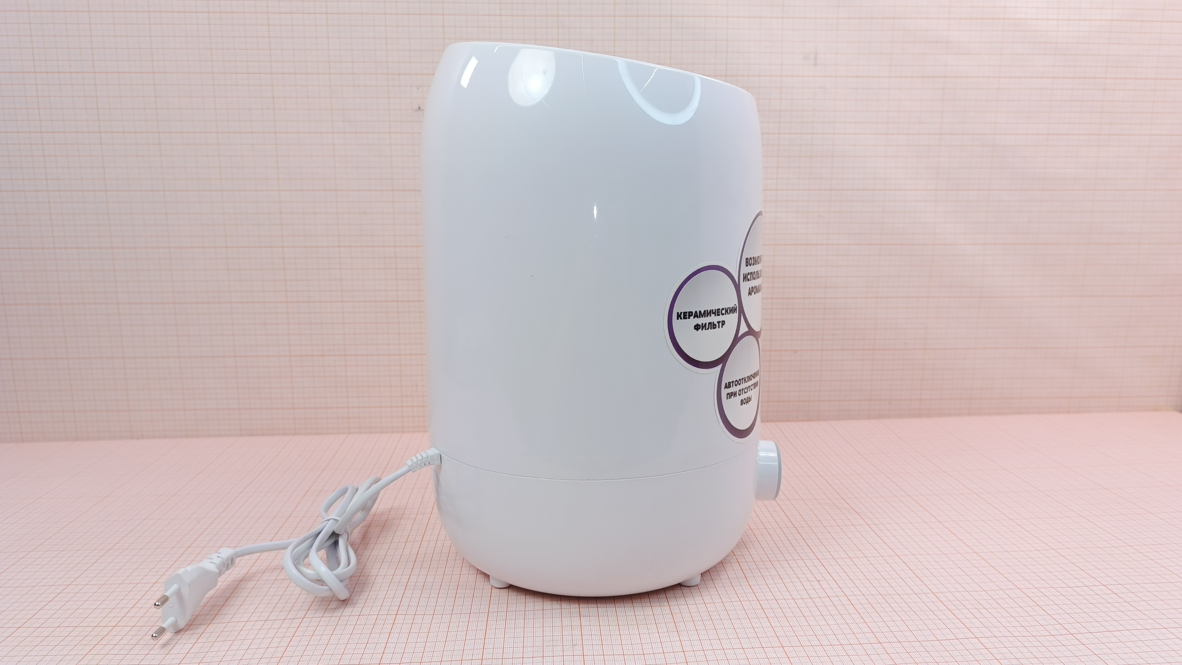 Включается, загорается индикация. Распыляет воду исправно. В комплекте отсутствуют: верхняя крышка с диффузором, керамический фильтр, крышка резервуара для воды.