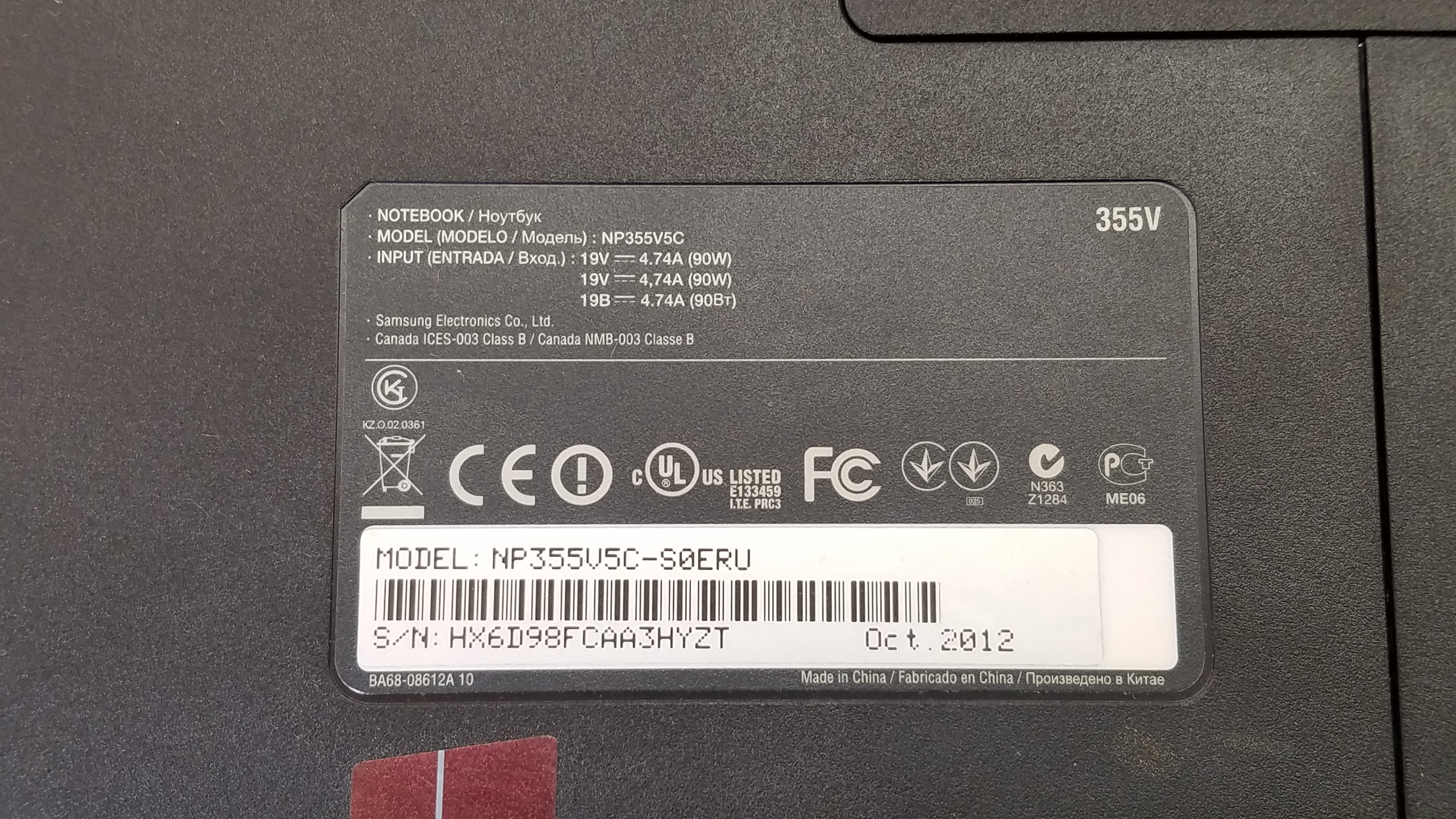 NP355V5C/15.6" 1366×768/A10-4600M/4GB DDR3/noHDD/AMD HD7660G + HD7670M 1GB/WiFi+BT/DVD/BP 48Wh/БП 19V-4.74A