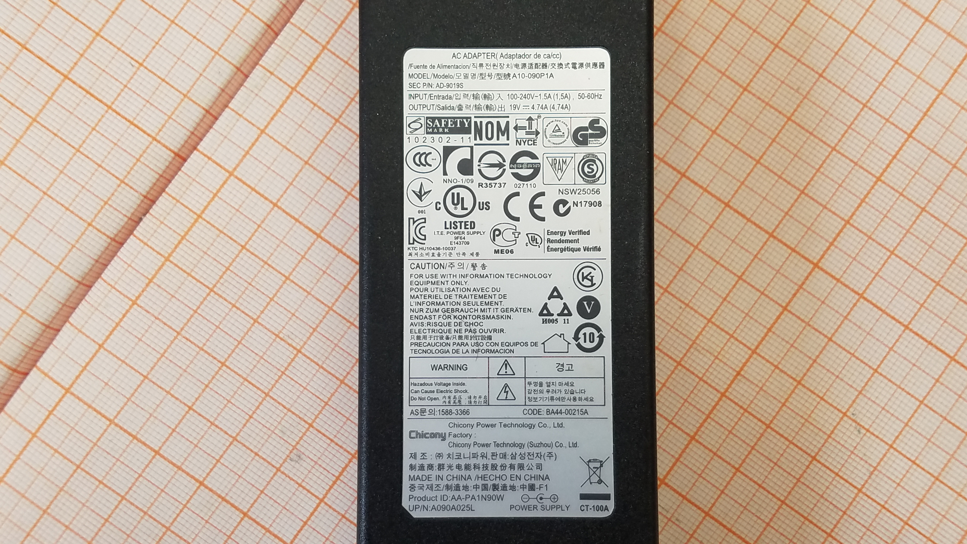 В комплекте блок питания SAMSUNG A10-090P1A 19V-4.74A с кабелем питания IEC-C5.