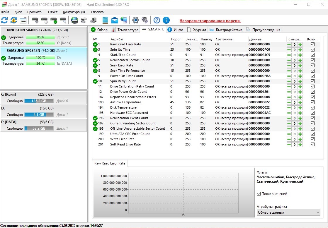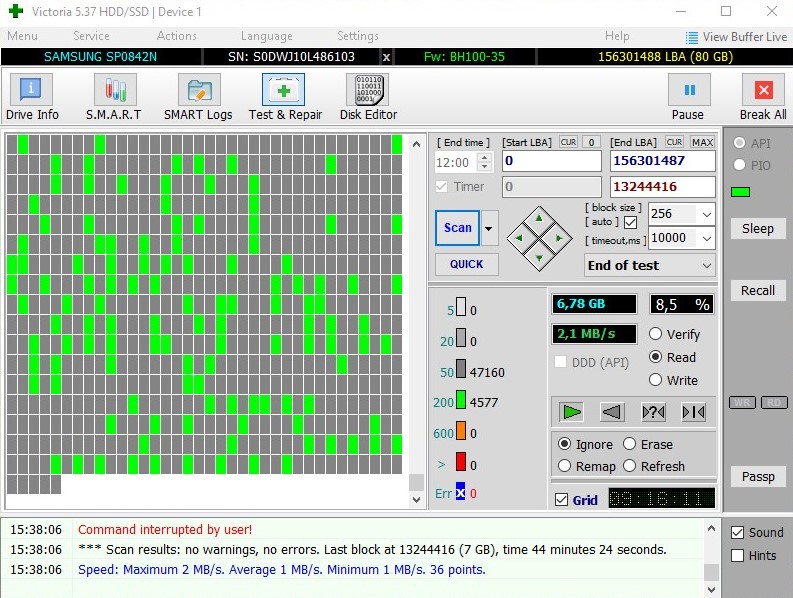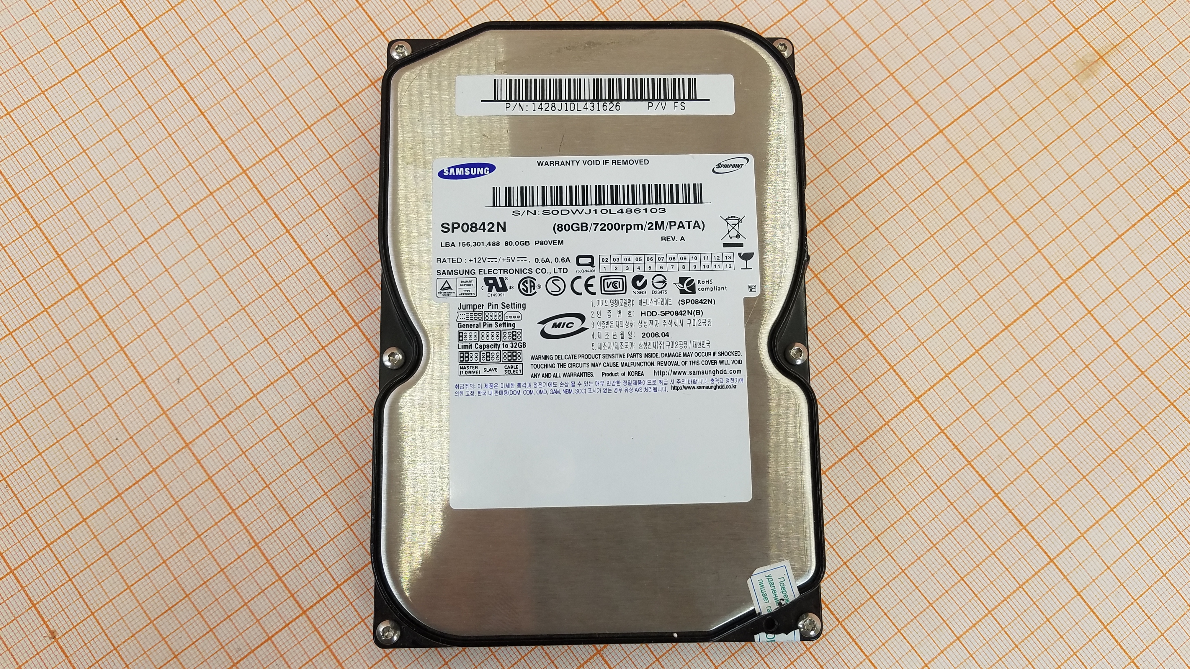 SAMSUNG SP0842N / 80GB / 7200 rpm / 3770 ч / 133 Mb/s
