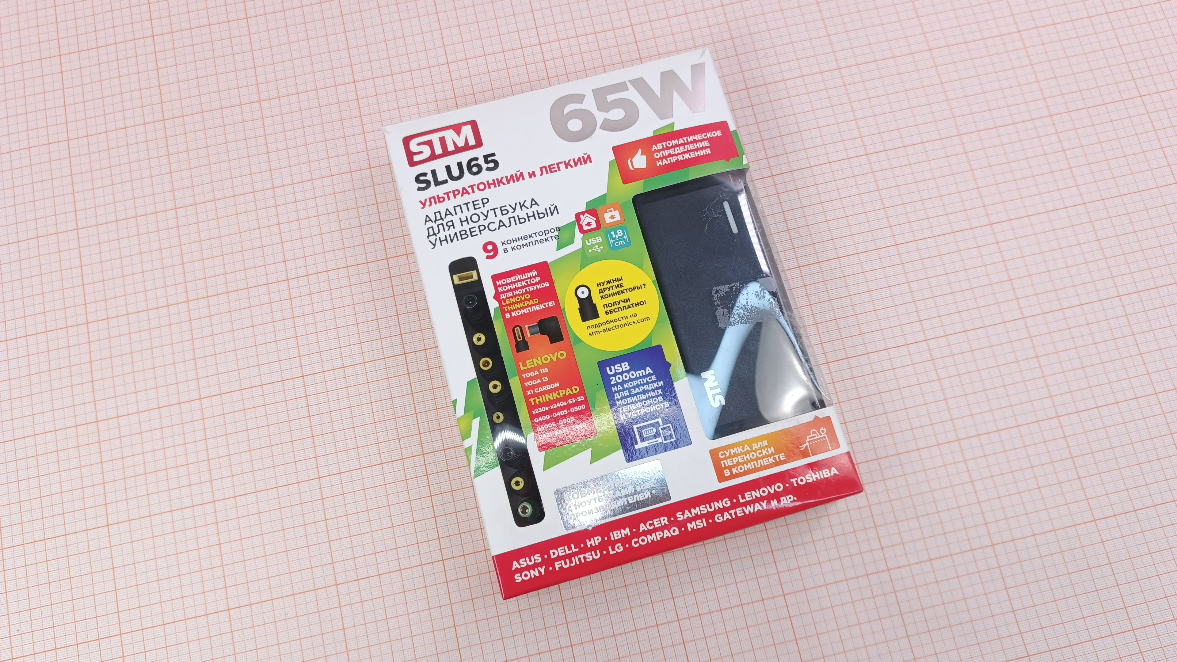 SLU 65 / 65W / 15V/16V/18,5V/19V/19,5V/20V / 4A / USB 5V-2A / Универсальный 3×Pin / Одно напряжение на всех коннекторах
