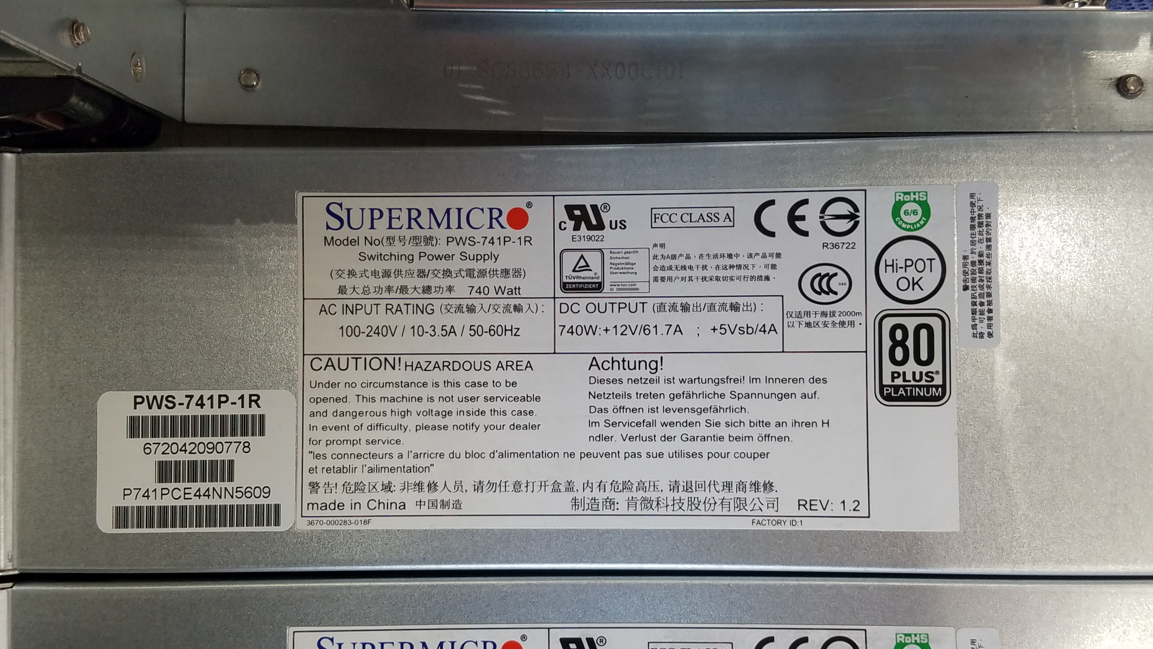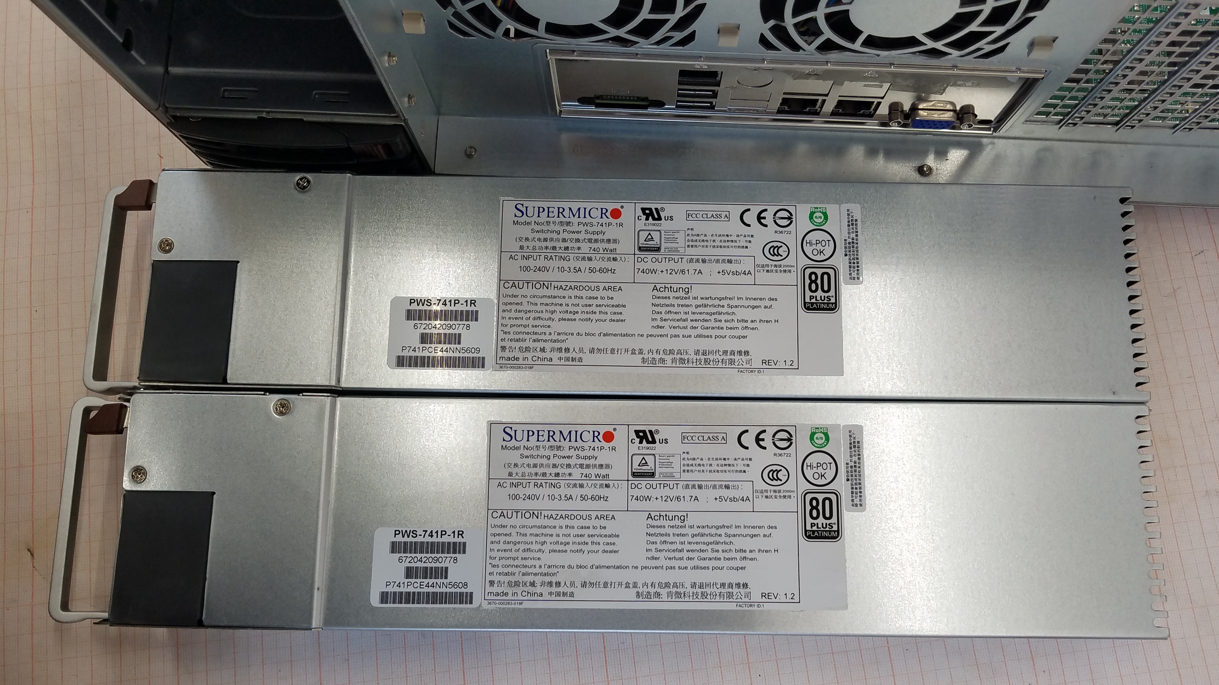 > Сервер б/у на базе MB SuperMicro X9DRD-A-UC014 и корпуса SuperMicro CSE-836BA с двумя PSU Hot Swap 740W 80 Plus Platinum.
