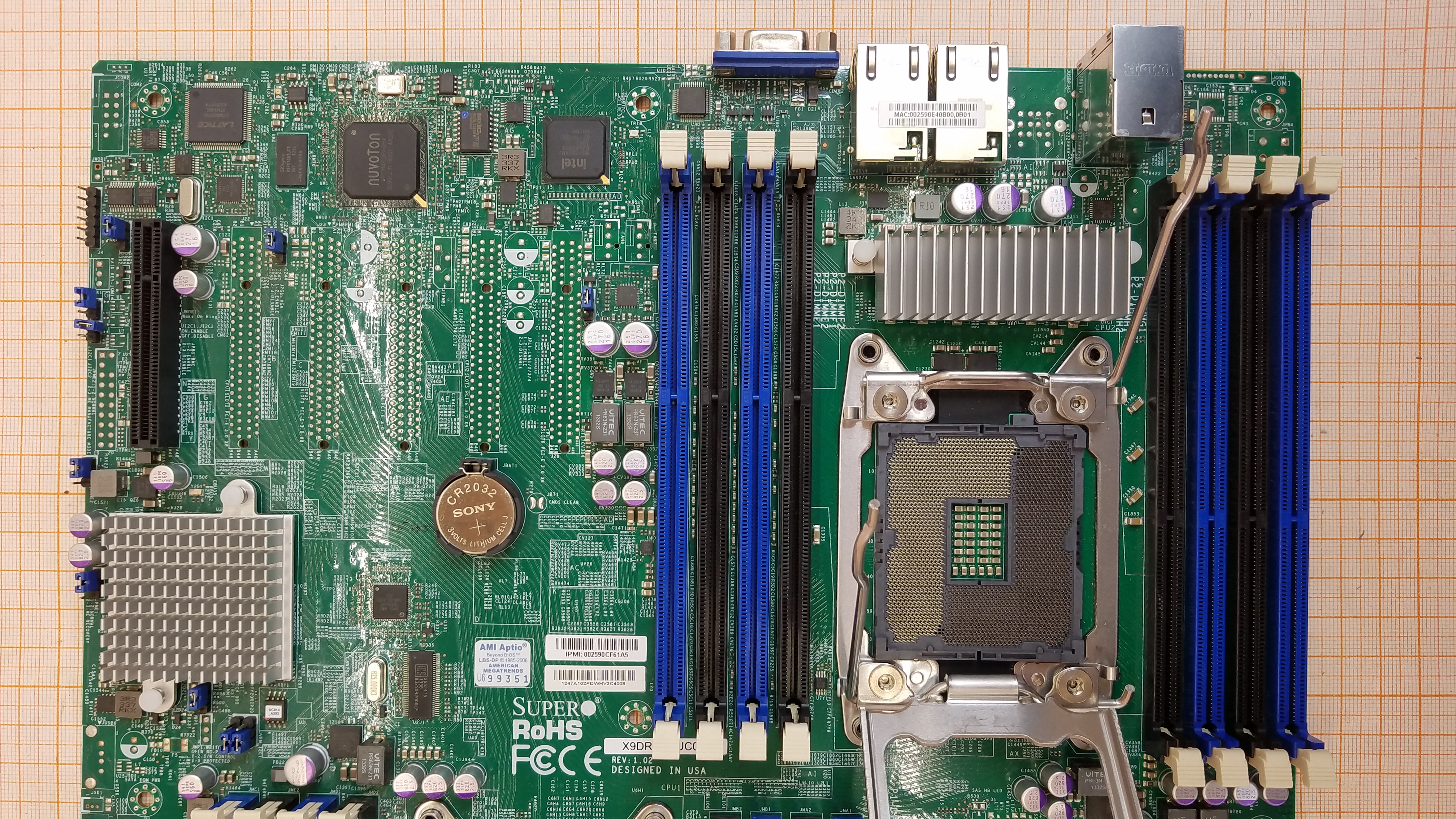 SuperMicro X9DRD-EF/A-UC014 / REV 1.02 / отломан фиксатор кабеля RJ45