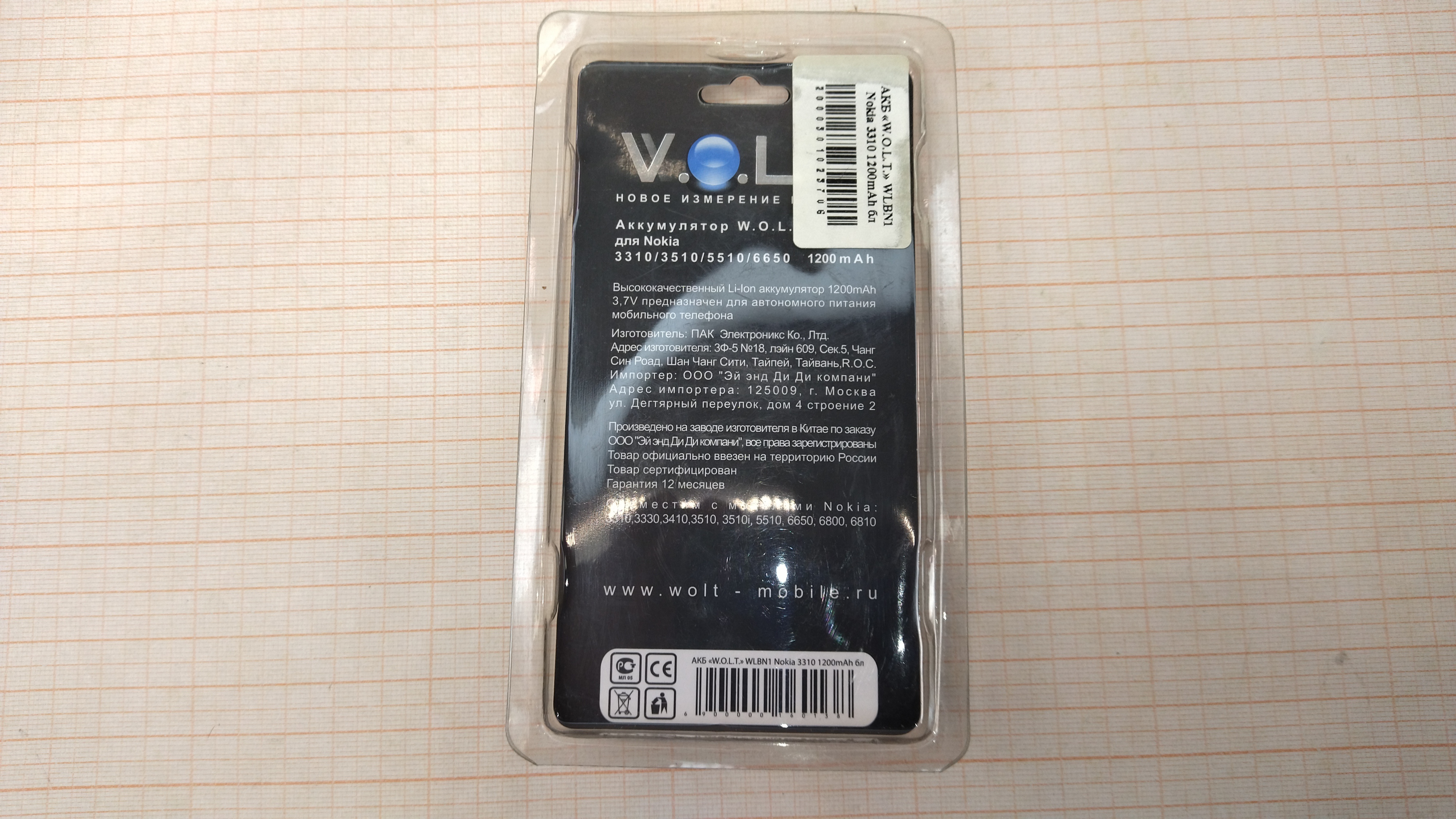 Li-Ion / WLBN1 / 1200mAh / 3.7V / 4.44Wh / CE / РСТ / Новый в упаковке
